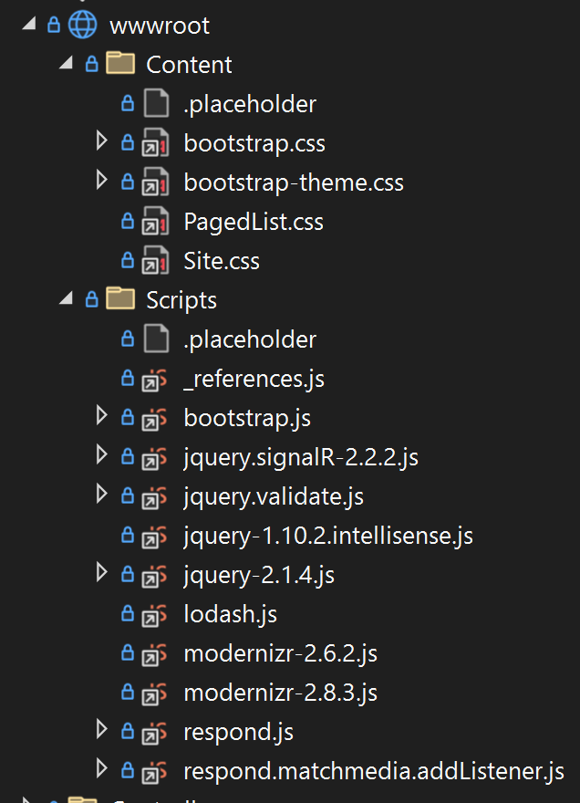 It's not identical to what we saw before (there are many options we can configure with WebOptimizer omitted here), and we found it impossible to exactly emulate the bundling of ASP.NET MVC 5. We just needed to make sure we didn't duplicate files by altering our ASP.NET Core application to pull in the ASP.NET MVC 5 assets through linking: